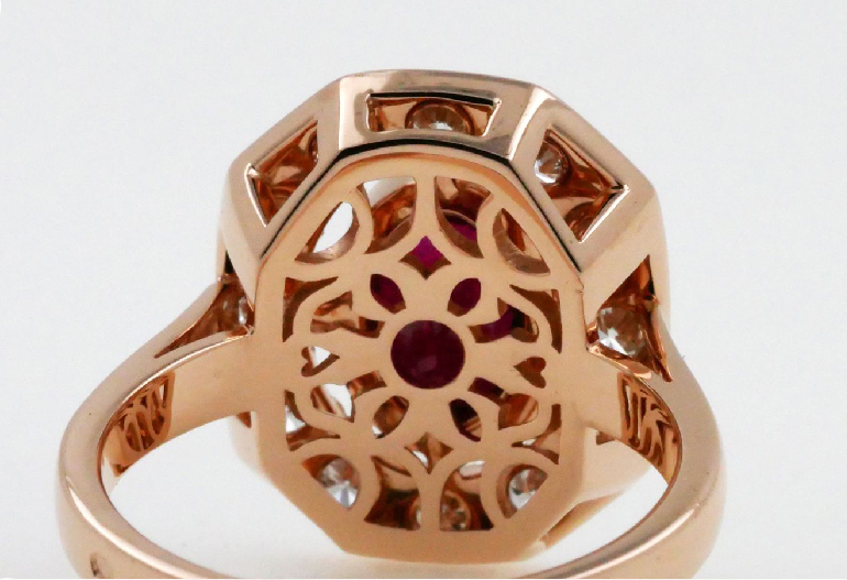 Le chaton est un élément essentiel dans la mise en valeur de la pierre. Bien plus qu’un simple support, il contribue à l’harmonie générale du design et reflète l’alchimie parfaite entre un choix esthétique et une tenue solide et durable du bijou. Il est également possible de le customiser par une gravure ou le sertissage de pierres.