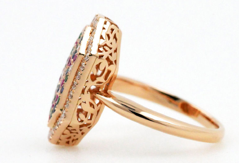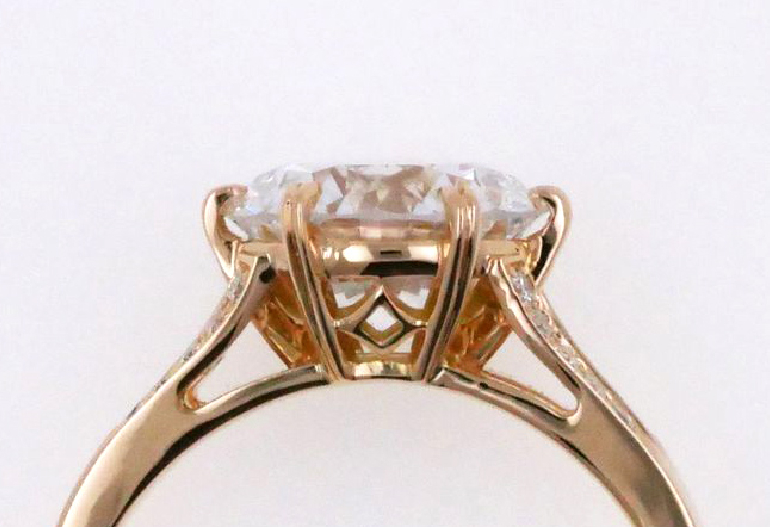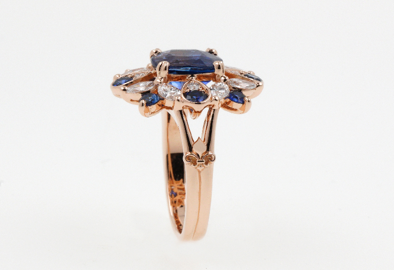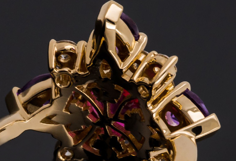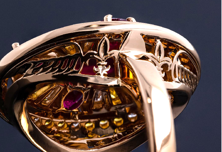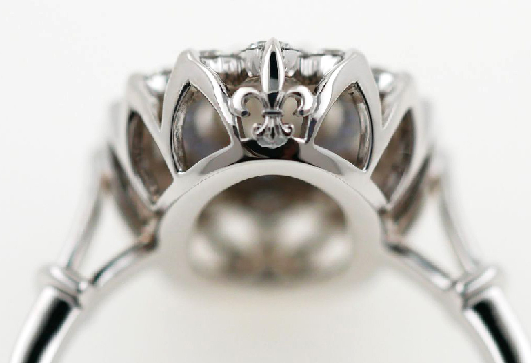 Dans l’univers de la joaillerie sur-mesure, chaque détail compte y compris ceux que l’on ne voit pas au premier coup d’œil. C’est notamment le cas des flancs de la bague, ces parties latérales qui soutiennent la pierre centrale. Bien que plus discrets, ils offrent une opportunité unique de personnalisation et permettent d’exprimer toute la richesse du design. Il est ainsi possible de sculpter les flancs de la bague avec des motifs ou y sertir des pierres créant un jeu de lumière subtil et raffiné visible à chaque mouvement de la main. Ce type de détail caché renforce l’aspect exclusif du bijou et les flancs deviennent alors un espace d’expression de luxe discret.