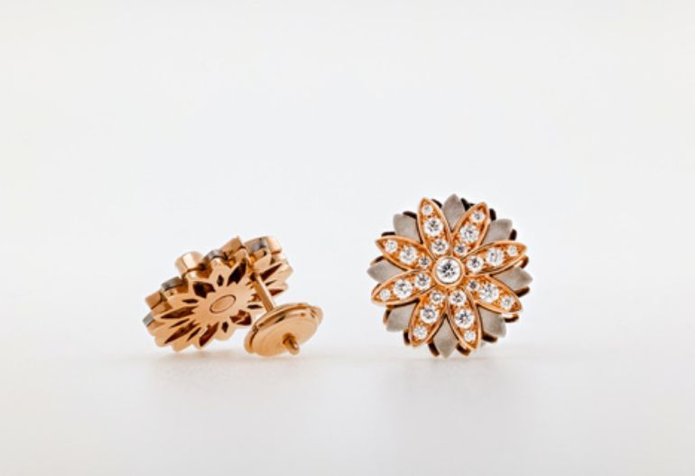 The flowers are articulated and move thanks to a gear and axle mechanism.