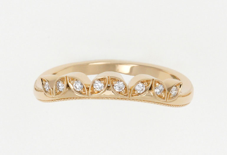 Depending on the design of the engagement ring, it is possible to create a wedding band that follows the movement of the jewelry and fits the setting perfectly.
