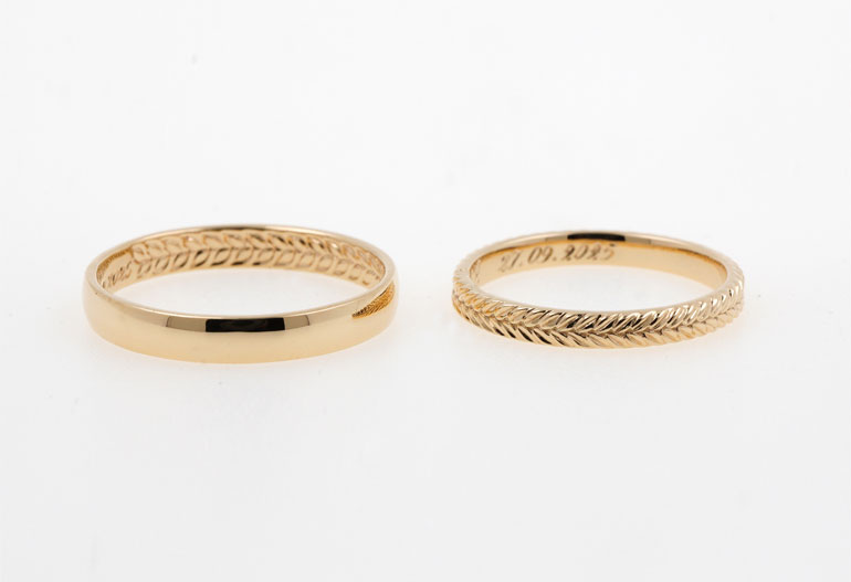 Regardless of the style chosen, couples traditionally opt to have an engraving placed inside the ring. Whether done by laser or by hand (which adds even more authenticity and charm), the engraving most often features the first name of their spouse and the wedding . However, there are no set rules, and the couple is free to engrave initials, a message, or simply symbols, for example.